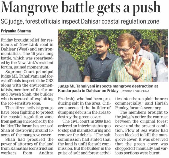 Here are some news articles which reported on the site visit by the Principal Jugde Hon. Tahiliani on the 3rd of December to see the destruction caused to the environment by Jayesh Shah.