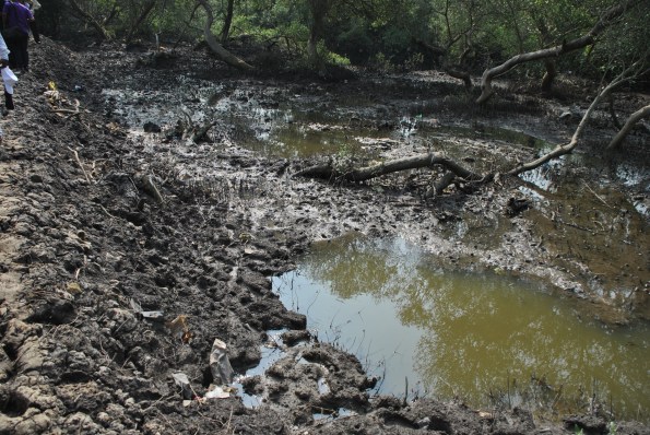 The visit confirmed the allegation that a bund has been built, cutting off water flow to mangroves.