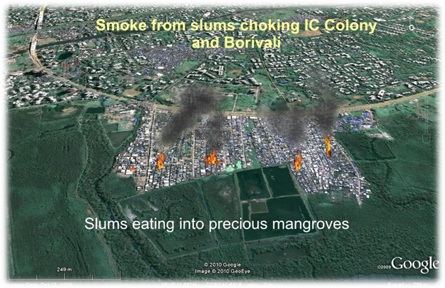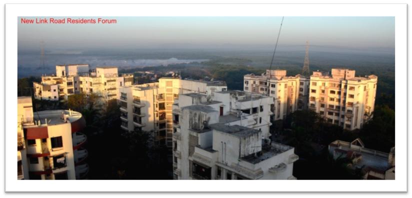 You will see that the residential buildings are clear, but there is a large amount of smoke coming out of the illegal slum colony adjoining the Link road, which have destroyed mangroves.