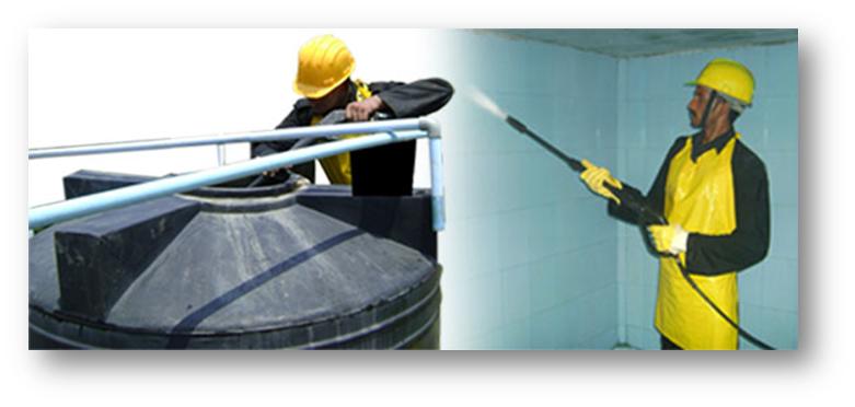 How is a water tank cleaned?
