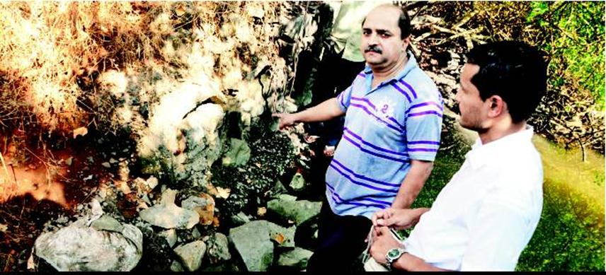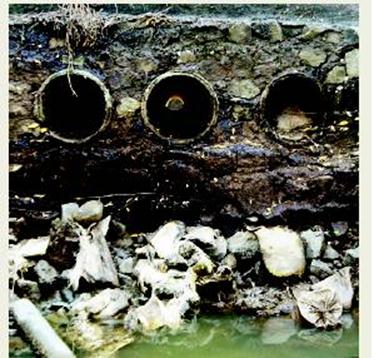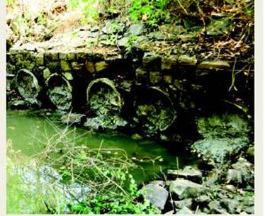 Two outlets on one side of Gorai Creek Road have been blocked with concrete chunks. Below: On the other side, five outlets have been completely filled with concrete