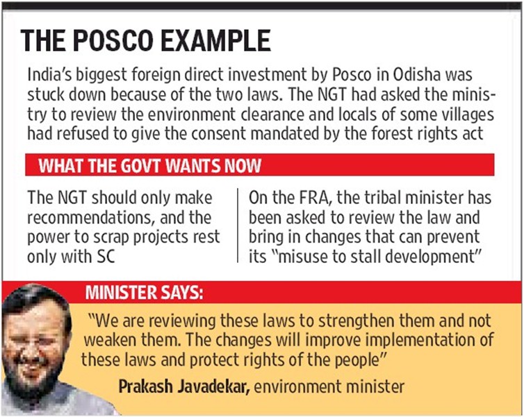 The two laws in question are the National Green Tribunal Act and Forest Rights Act, which have largely been assailed as hurdles to economic growth by pro-business lobbies.