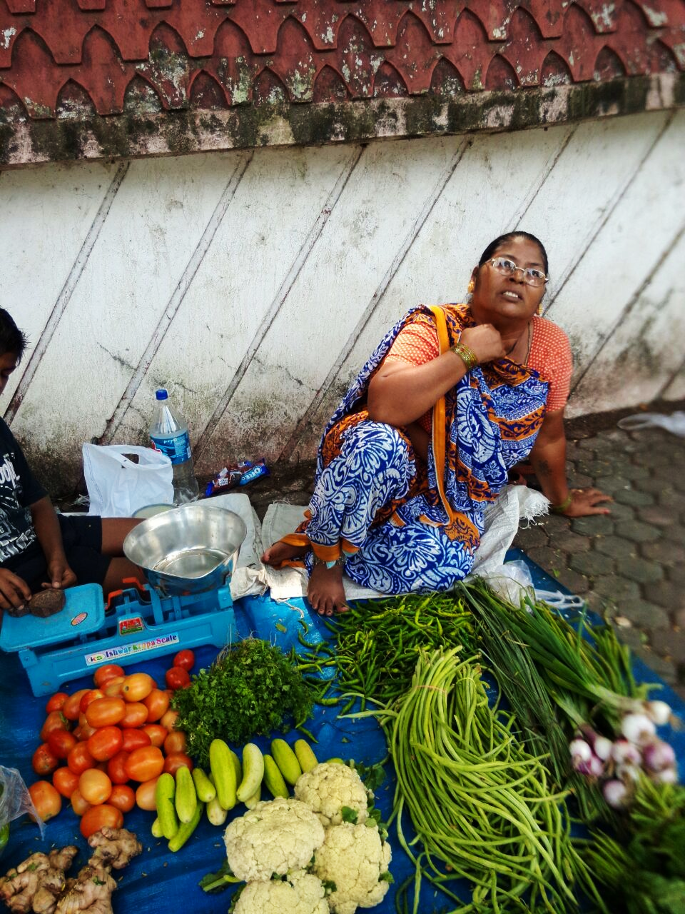 She started giving a long account of how she was here before the Police chowky came into existence, and named the sitting MLA and his son the sitting Corporator as the ones who had asked her to sit here and sell vegetables. He politely requested her to leave. She refused saying that she is not creating any trouble for anyone and no one is objecting!
