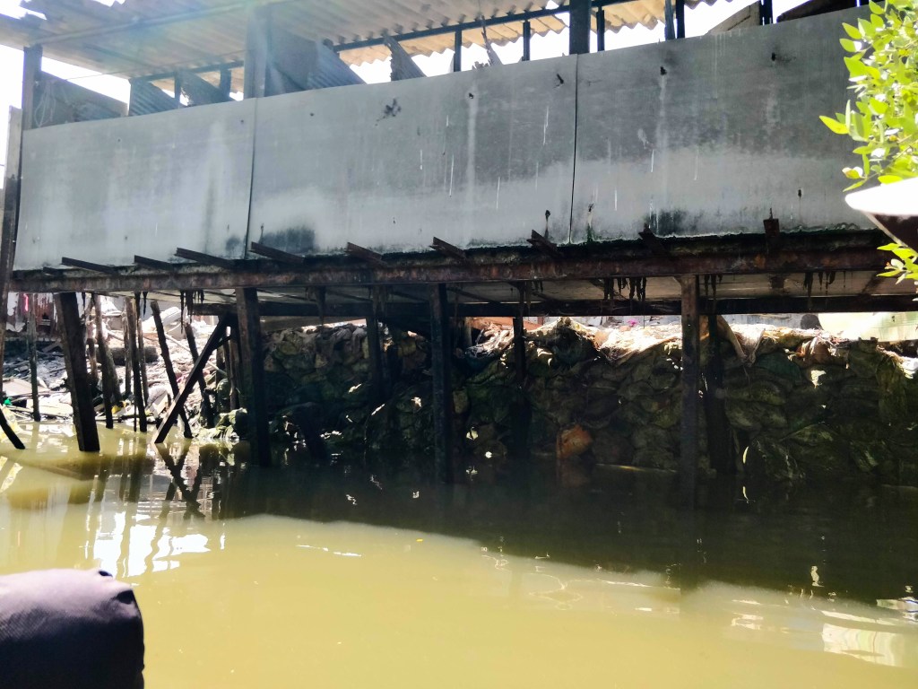 These slums have toilets which are draining untreated sewage / garbage into the water bodies. [PIC 2].