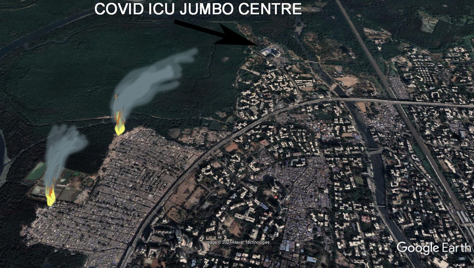 This burning and using up of the precious Oxygen is happening literally within walking distance of a COVID ICU setup at the RTO in Kanderpada, North Mumbai. And not only that, they are releasing toxic pollutants right into the atmosphere